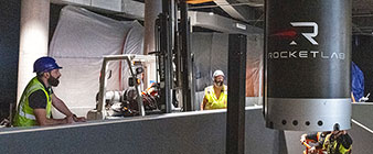 : The last but perhaps largest step before the California Science Center can open its new Samuel Oschin Air and Space Center, the home of NASA's retired space shuttle Endeavour, is to populate it with hundreds of exhibits and artifacts. The first installations in the Kent Kresa Space Gallery include a walkthrough solid rocket booster segment, a space shuttle main engine and a Rocket Lab Electron small-lift booster.