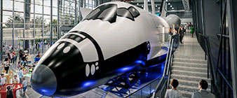 : On Monday (Nov. 17), the Columbia Memorial Space Center in Downey, California, broke ground for a new 20,000-square-foot expansion that among other purposes will display the original full-scale space shuttle mockup built by Rockwell in 1972. The center has named the education facility after the orbiter, which in recent years has become known as "Inspiration." The project's campaign seeks $50 million to be completed.