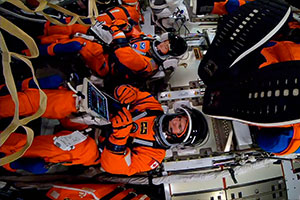 In addition to the OFK, the astronauts each have their own Personal Preference Kit (PPK), a smaller pouch in which they can carry mementos that have significance to them. As examples, Wiseman said he is flying a notecard to take down his thoughts during the flight; Glover has a bible, heirlooms for his wife and children and a collection of inspirational quotes compiled by Apollo 9 astronaut Rusty Schweickart; Koch has handwritten notes from people that she loves to serve as a tactile connection between her and them; and Hansen has four moon pendants that he is taking for his wife and three children. |