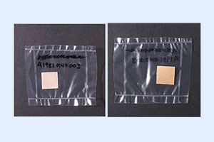 Front and back views of the square of 1903 Wright Flyer wing fabric that is flying on NASA's Artemis II moon mission. (Smithsonian)