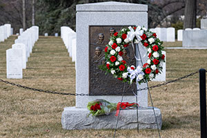 The Space Shuttle Challenger Memorial is seen with a newly-laid wreath as part of NASA's Day of Remembrance, Jan. 22, 2026, at Arlington National Cemetery in Virginia. (NASA/Keegan Barber) |