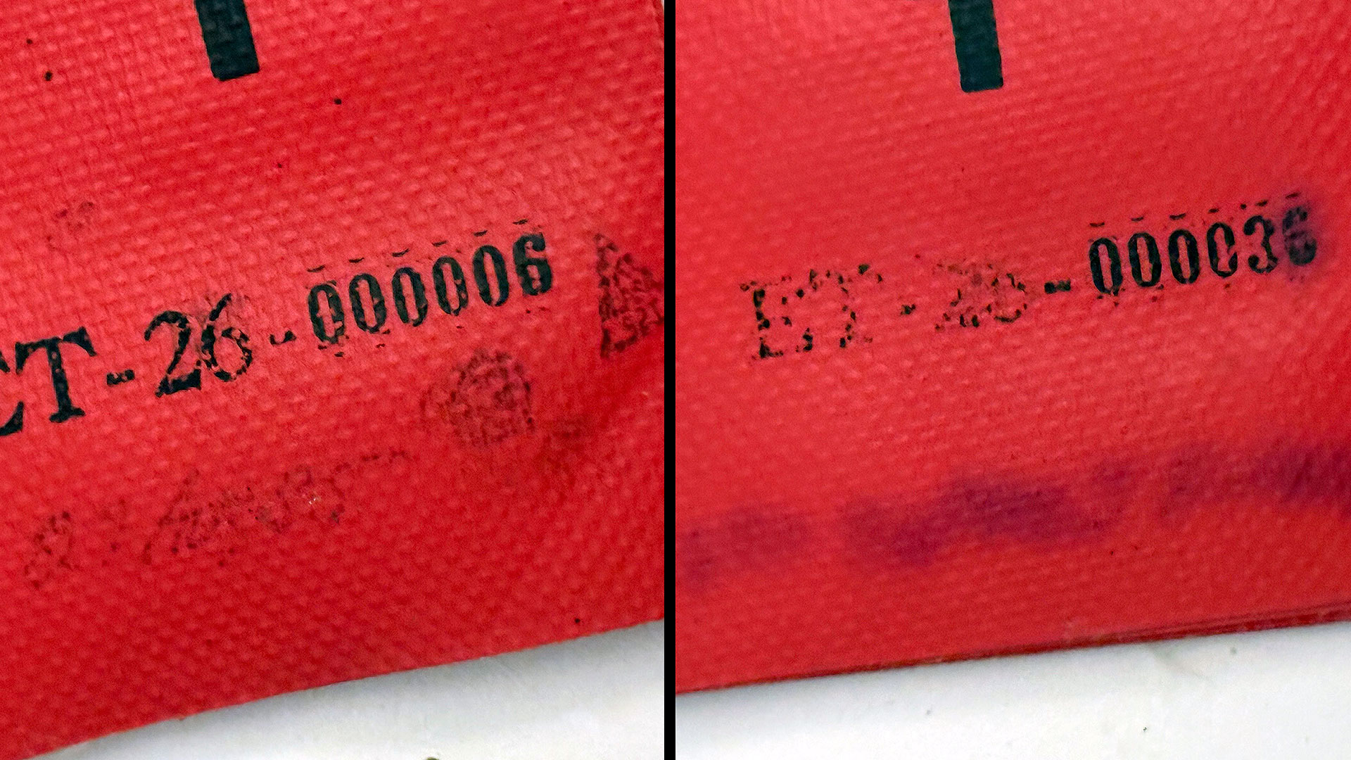 It was about a year later when I first noticed the ink stamps at the bottom of each tag. They were marked "ET-26" followed by a number. For example, the first tag in the clipped-together stack was stamped "ET-26-000006."