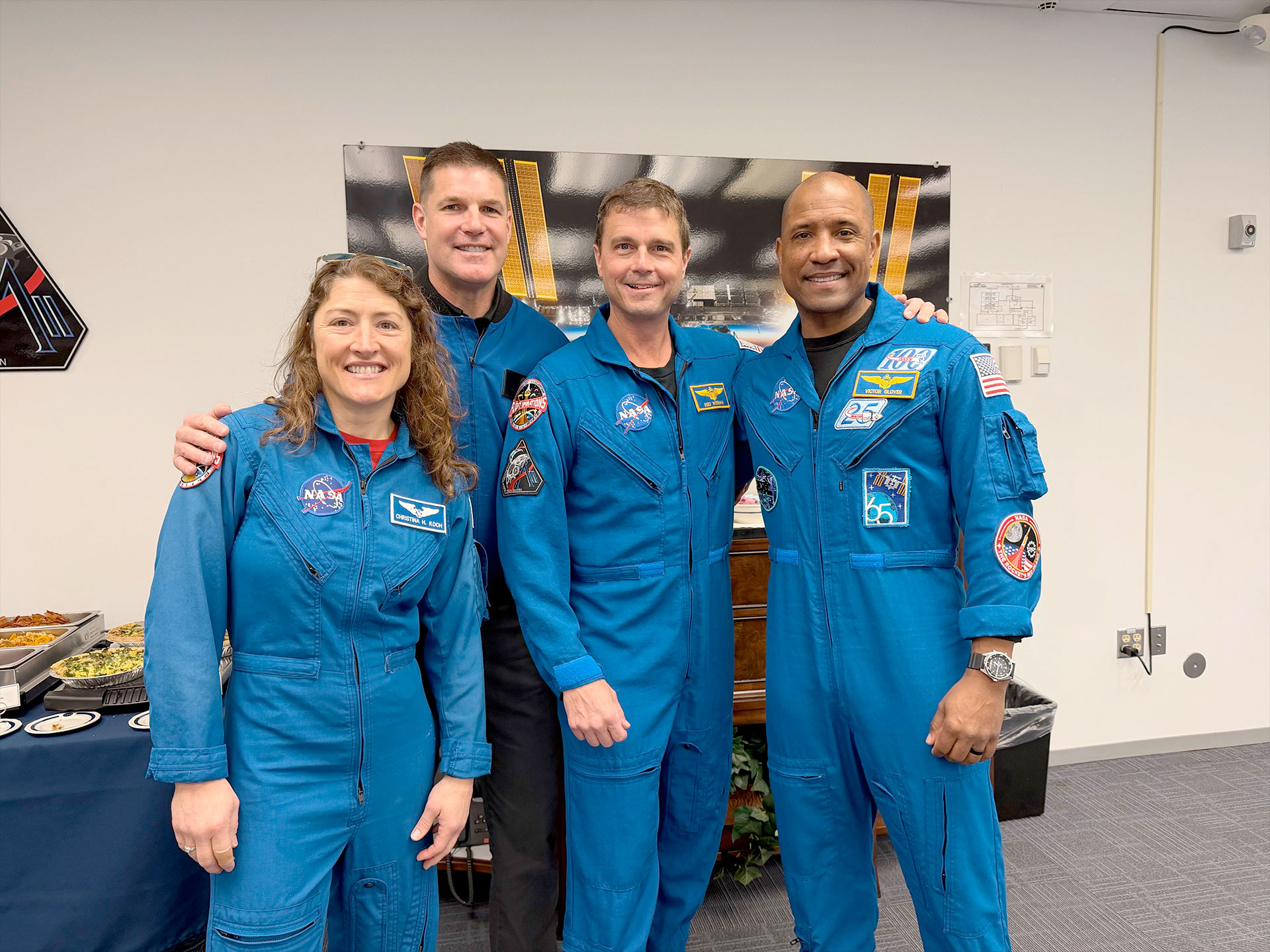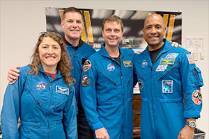 Artemis II crewmates from the left: Christina Koch, Jeremy Hansen, Reid Wiseman and Victor Glover, as seen after the wet dress rehearsal ended at Johnson Space Center, Feb. 3, 2026. (NASA) |