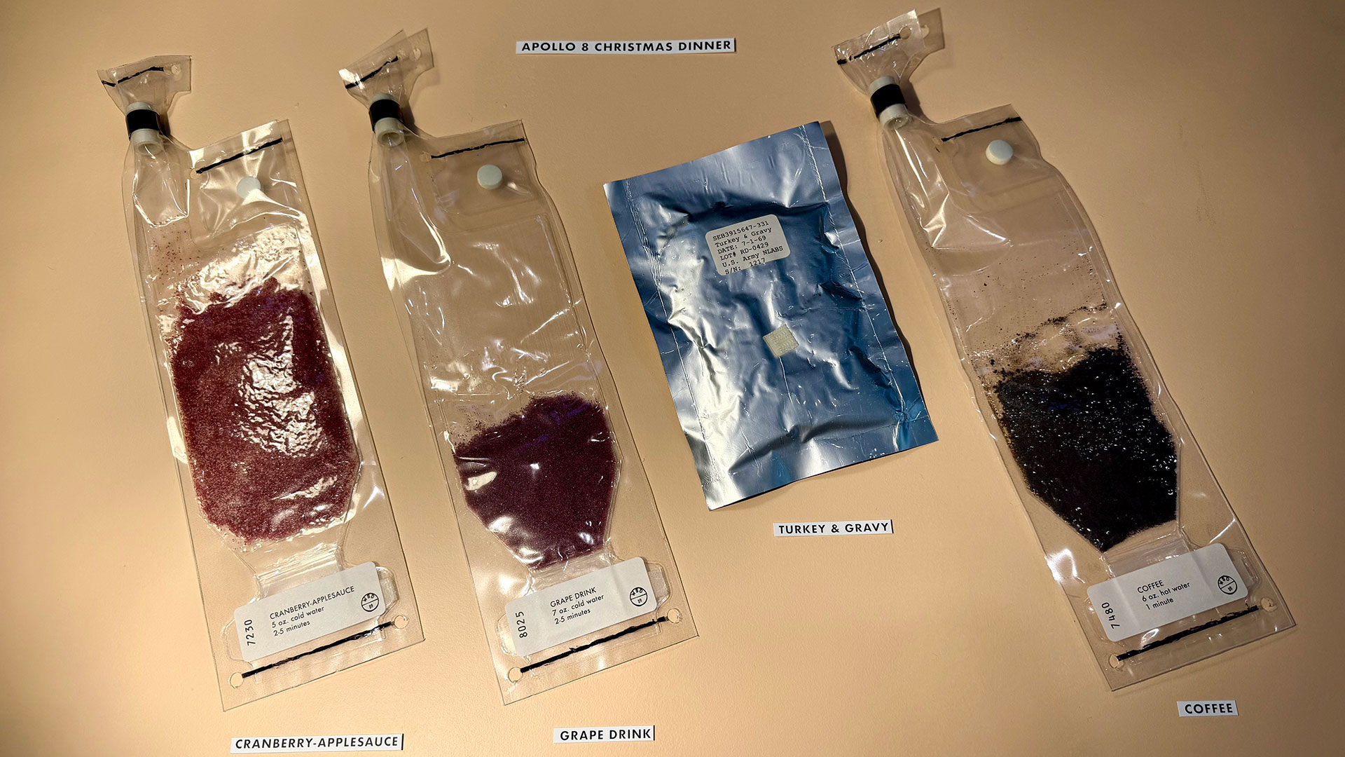 Ryan Nagata's replicas of the Christmas meal enjoyed by the crew of Apollo 8 around the moon in December 1968. (Ryan Nagata)