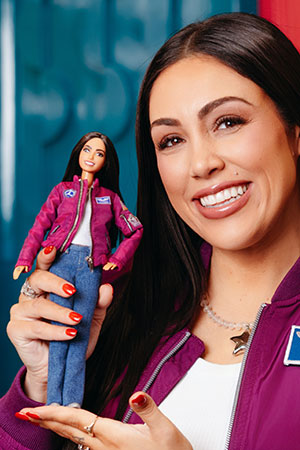 Suborbital research astronaut Kellie Gerardi poses with her one-of-a-kind doll as part of Mattel's 2026 Barbie Dream Team. (Mattel)