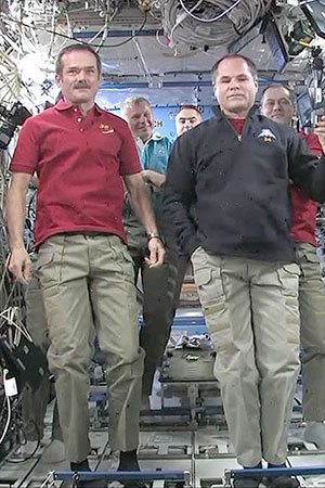 Hadfield, along with NASA astronaut Tom Marshburn and cosmonaut Roman Romanenko are scheduled to stay on the ISS through May. They will be joined later this month by three new Expedition 35 crew members, including Chris Cassidy of NASA and cosmonauts Pavel Vinogradov and Aleksandr Misurkin, both with Roscosmos.