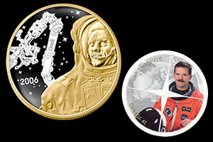2006 Royal Canadian Mint coin and 2003 Canada Post postage stamp issued to honor astronaut Chris Hadfield. (collectSPACE)