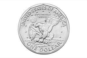 The Apollo 11 patch was struck on the reverse of the Eisenhower and Susan B. Anthony dollars. (United States Mint)