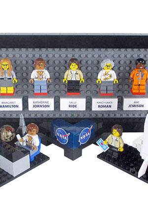 "Women of NASA" honors computer scientist Margaret Hamilton; mathematician Katherine Johnson; Sally Ride; astronomer Nancy Grace Roman; and Mae Jemison. (LEGO Ideas/Maia Weinstock)