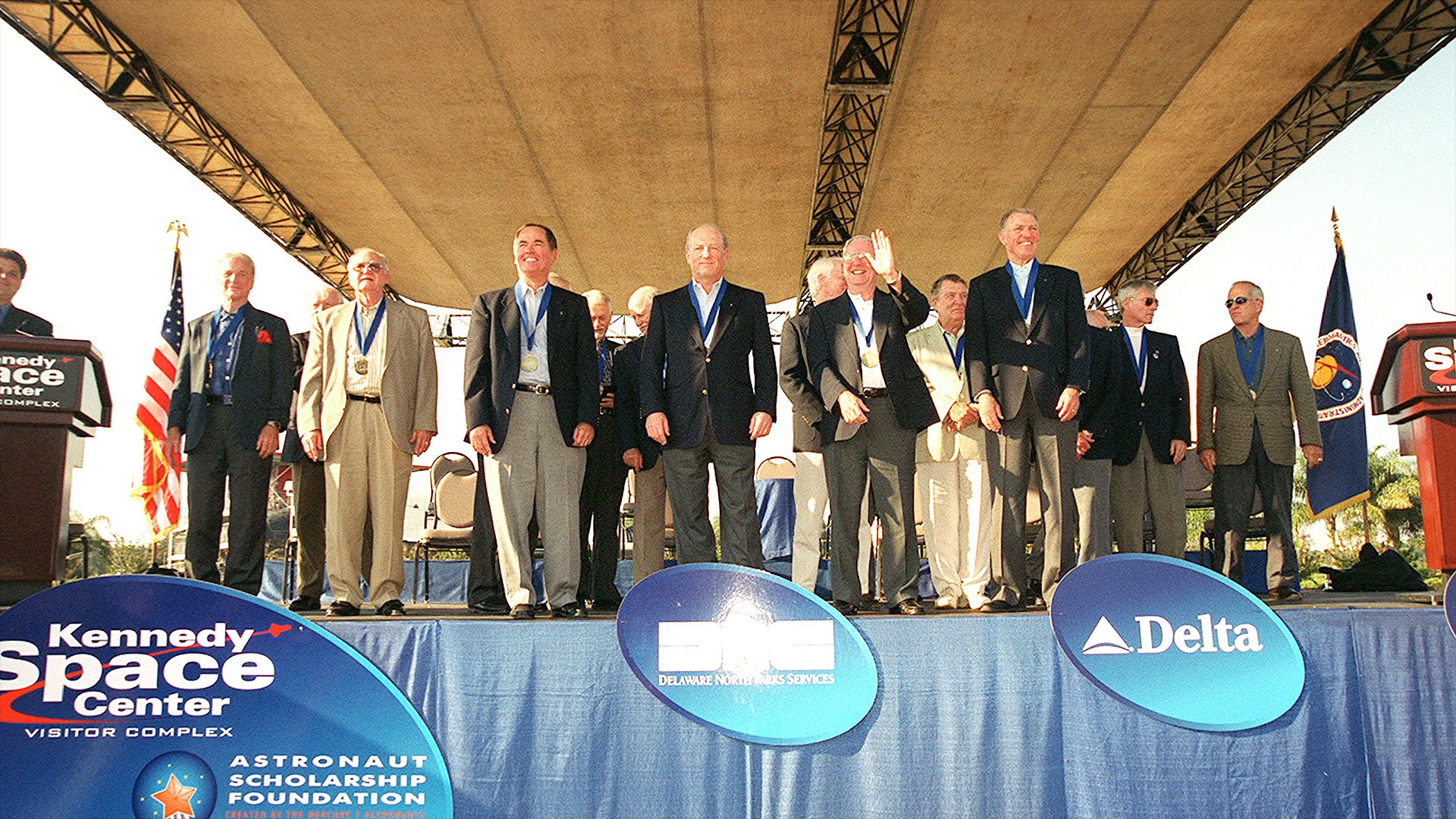 James Lovell, Apollo 13 commander and chairman of the Astronaut Scholarship Foundation, served as host of the event. Lovell was joined by Rusty Schweickart, Bill Anders, John Young, Wally Schirra, and Gordo Cooper.