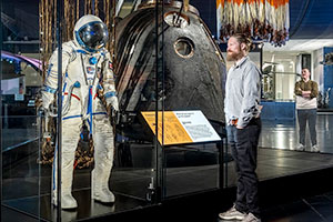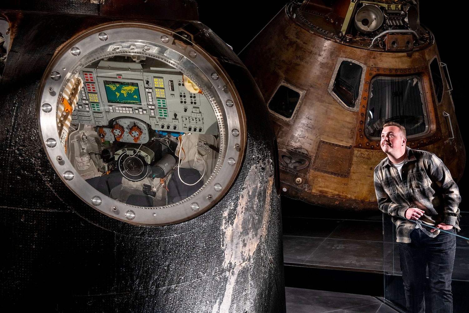 The Space gallery replaces "Exploring Space," which was open for nearly 40 years. In addition to the command module, Space brings together historic items that highlight the Space Age and the future of space exploration. The hall is the first and only place in the world where the public can view an Apollo spacecraft — which splashed down from the moon — side by side with a Soyuz descent module, one of the modern means of returning astronauts from low Earth orbit.