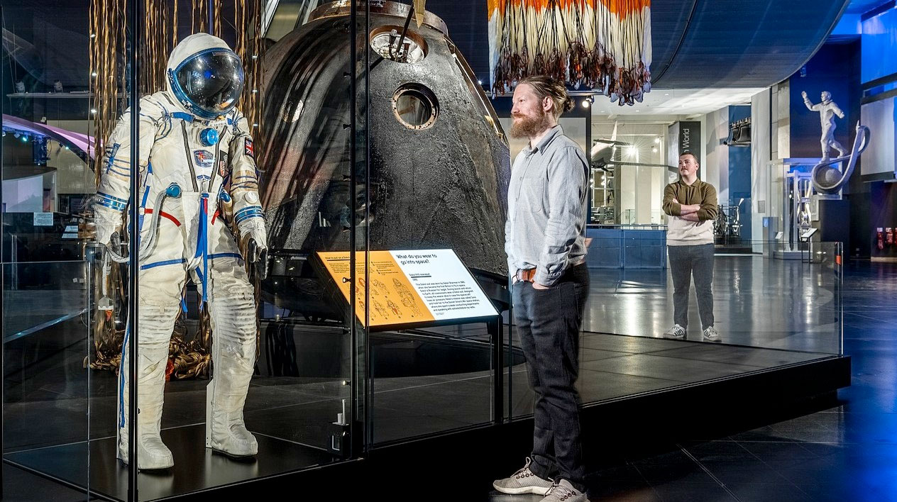 The Space gallery also includes a three-billion-year-old moon rock brought back to Earth by the Apollo 15 mission (on loan from NASA) and the Sokol pressure suit that the first Briton in space, Helen Sharman, wore to launch and land from the former Russian space station Mir. In addition, there are new technologies from the UK space sector, some of them displayed for the first time.