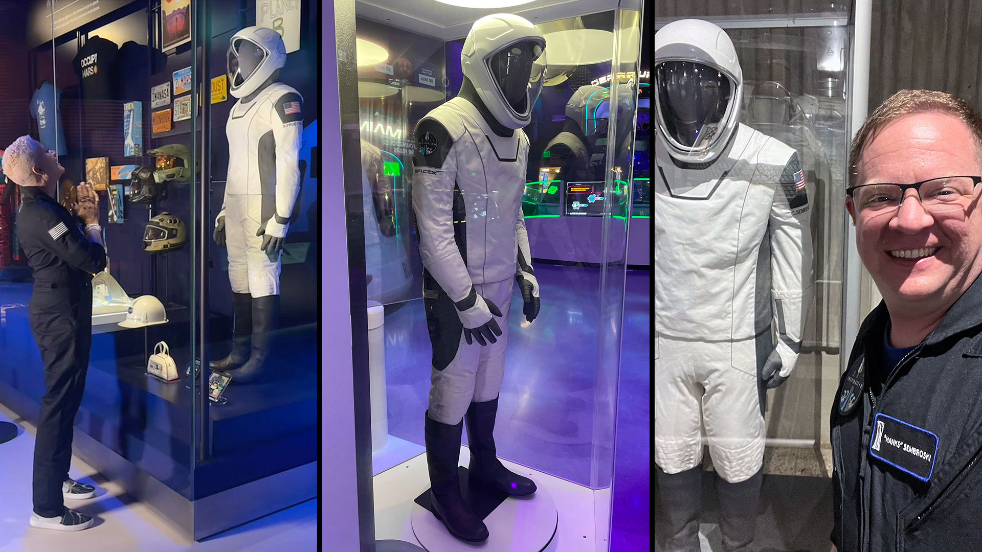 Hayley Arceneaux's Inspiration4 crewmates' suits are also on display: Sian Proctor at the Smithsonian; Jared Isaacman at Kennedy Space Center Visitor Complex; and Chris Sembroski at the U.S. Space & Rocket Center. (Proctor/KSCVC/Sembroski) |