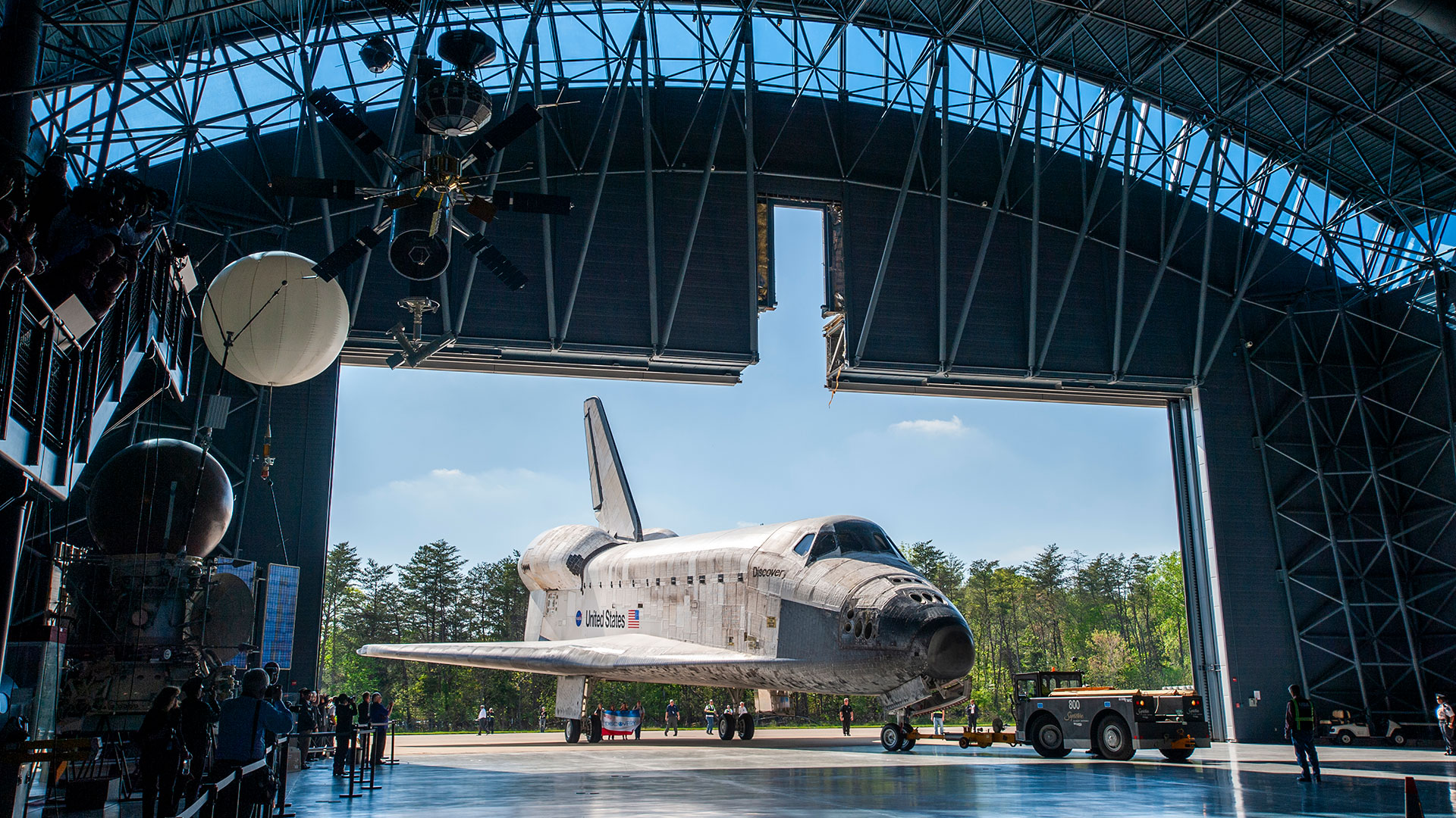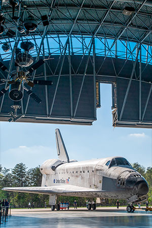 NASA's retired space shuttle Discovery was rolled into the James S. McDonnell Space Hangar at the Smithsonian National Air and Space Museum's Steven F. Udvar-Hazy Center in Chantilly, Virginia in April 2012 and has been on public display there ever since. (Ben Cooper/LaunchPhotography.com for collectSPACE)
