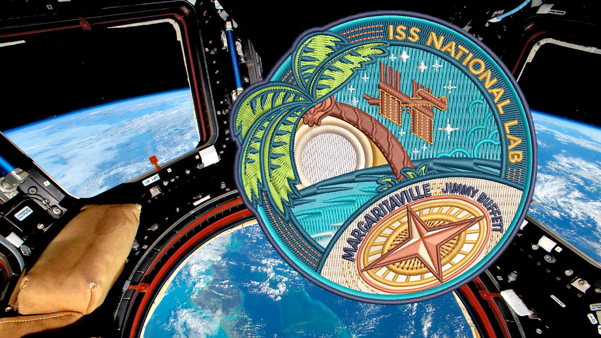 Based on the singer's original ideas, the collectible patch features the ISS as its orbit brings it over a tropical paradise. Buffett included both daytime and nighttime elements as a nod to the ISS encountering 16 sunrises and sunsets every day.