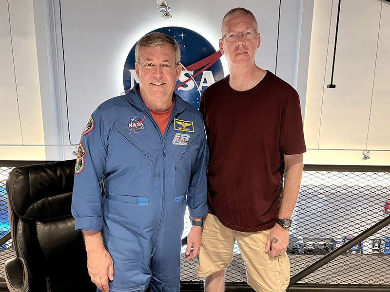 LEFT: Mike Foreman with Jacques van Oene, Feb. 11, 2026, KSC, FL (CREDIT: Jacques van Oene); RIGHT: Mike Foreman with Mark Pattison, July 7, 2024, KSC, FL (CREDIT: Mark Pattison);
