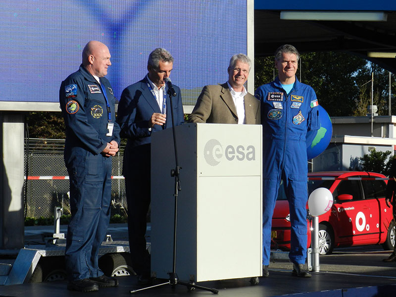 André Kuipers, Thomas Reiter and Paolo Nespoli with Franco Ongaro, October 7, 2018, Noordwijk, The Netherlands (CREDIT: Jacques van Oene);